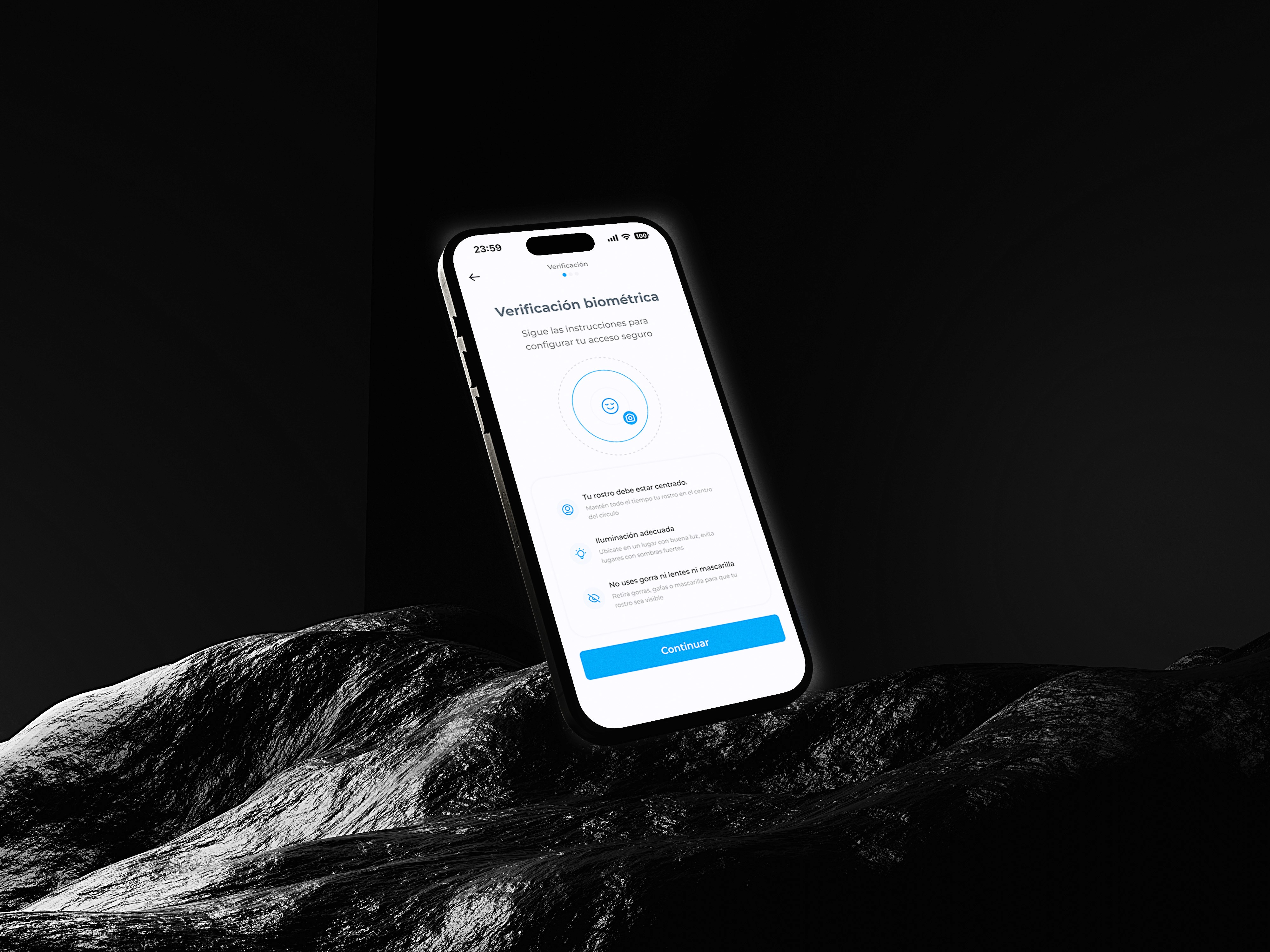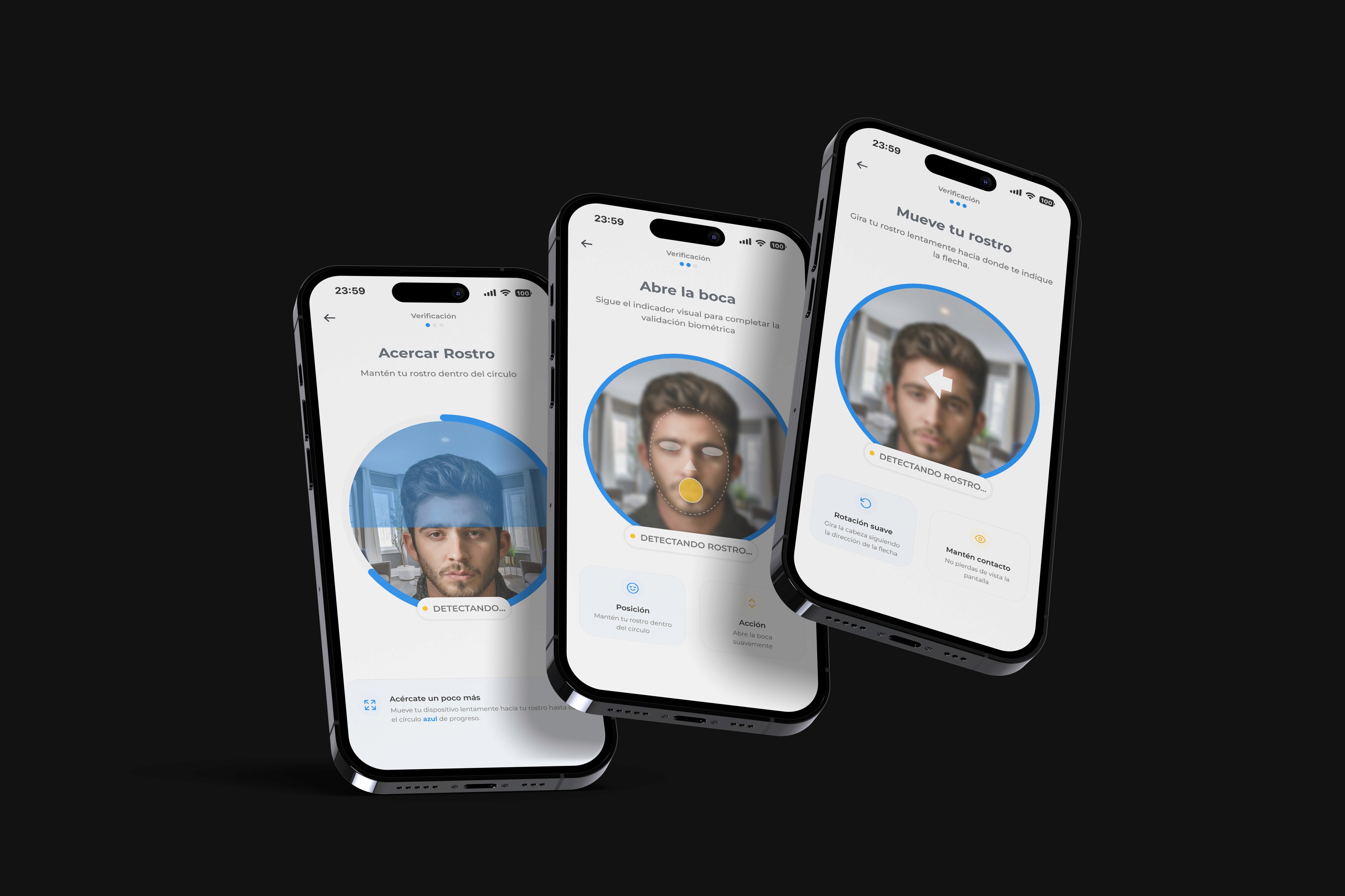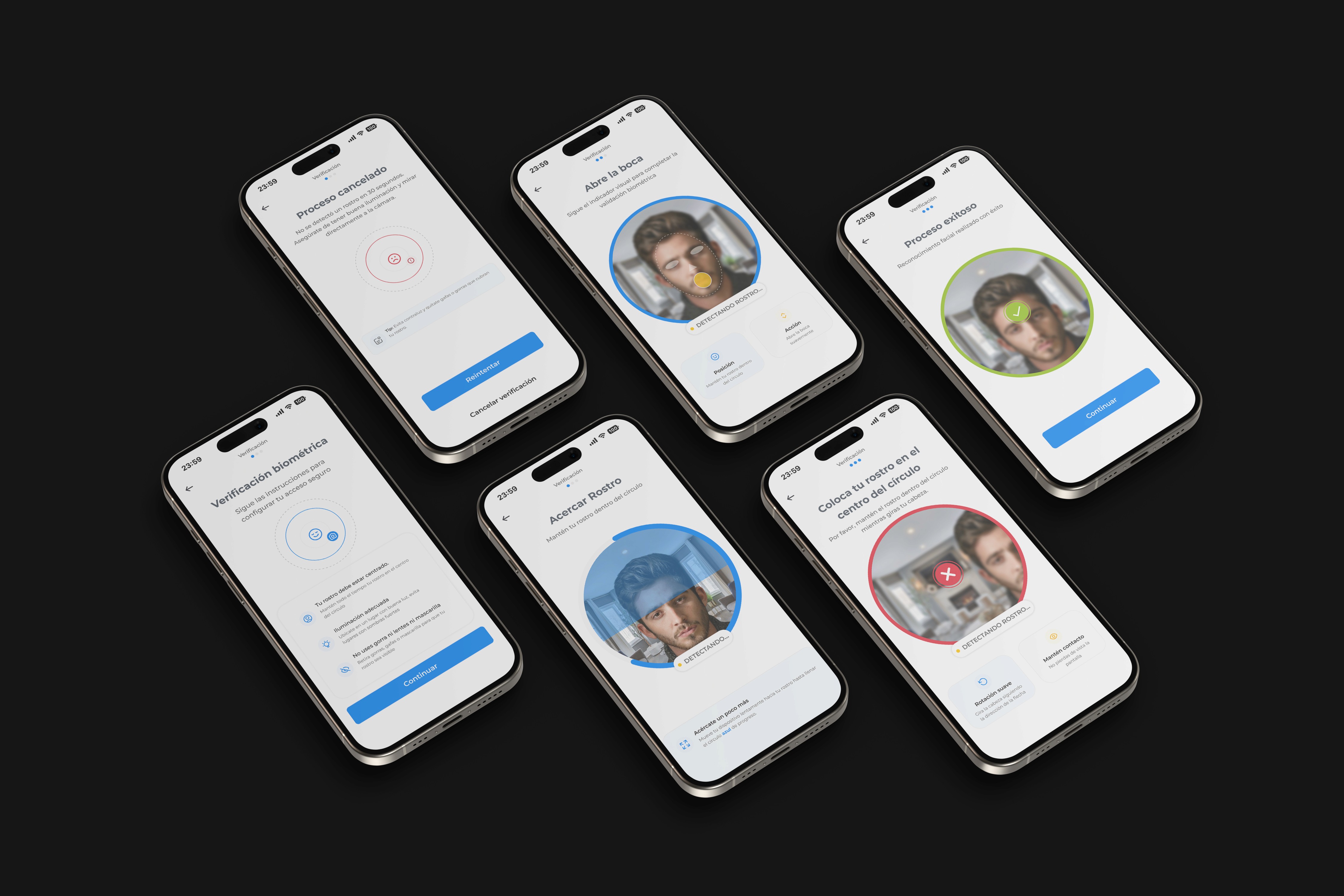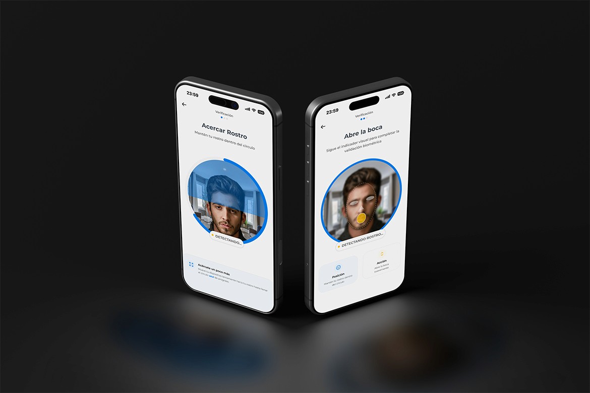El objetivo principal no era únicamente entregar una interfaz visual, sino validar una metodología de trabajo completa que fuera desde el research, el buen UX hasta la ejecución UI. Un proceso capaz de transformar datos de comportamiento y hallazgos de investigación en decisiones de diseño tangibles, alineando la seguridad técnica con la psicología del usuario. El reto fue orquestar una experiencia de verificación donde la Investigación definió los problemas de confianza, el UX estructuró los flujos, y el UI finalizó con una capa visual que aporta claridad. Era fundamental demostrar que una interfaz biométrica exitosa no nace de la estética, sino de un entendimiento profundo y validado de las necesidades humanas previo a cualquier decisión gráfica.